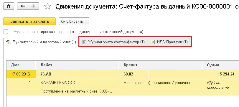 3. Авансовый счет-фактура фиксируется в книге продаж.