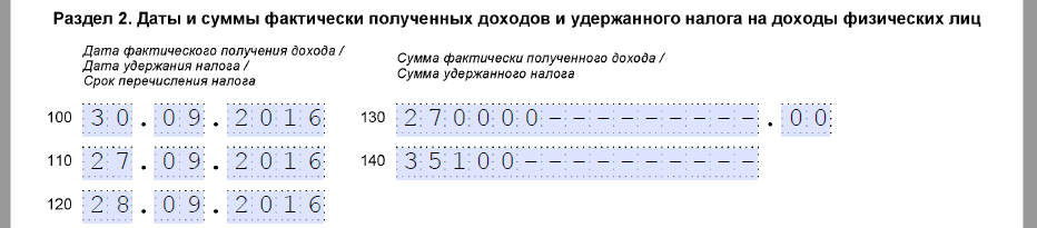 Вместе с этим, агент чаще всего не указывает такую информацию во втором разделе. Она будет указываться при выплате зарплаты сотрудникам по итогам полугодия. По Налоговому кодексу, дата фактического получения дохода представляет собой последний день месяца, в котором произошло начисление дохода, но не обязательно его выплата.