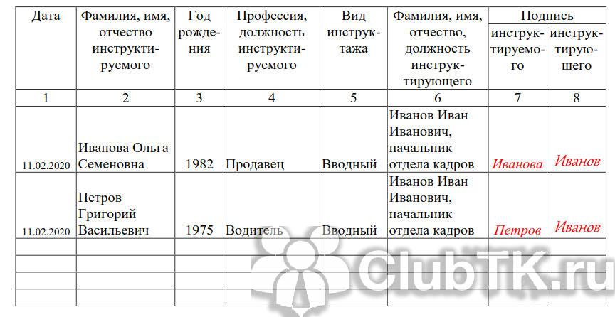 По окончании беседы в журнале расписываются работники, который проводил инструктаж, и который его прошел.
